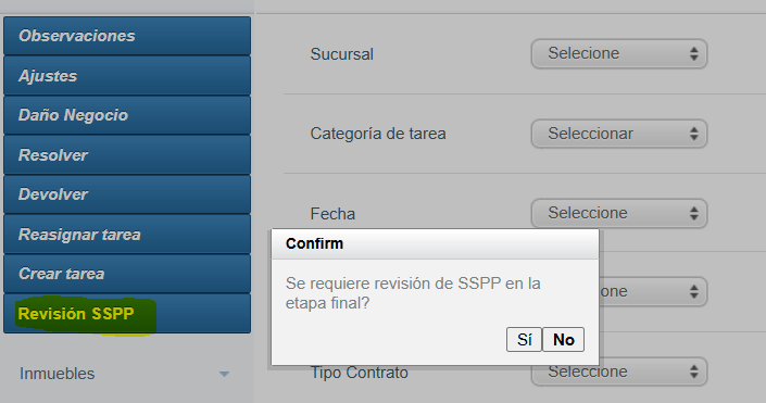 4. Revisar SSPP: Se reclama, se gestiona Revisión SSPP, para indicar si se despliega tarea de confirmación de SSPP antes de la gestión del primer pago con al Opción SI, para que se haga el flujo sin verificación con la Opción NO.