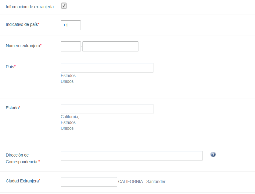 Si el cliente reside en el extranjero se debe marcar el check para ingresar los datos.