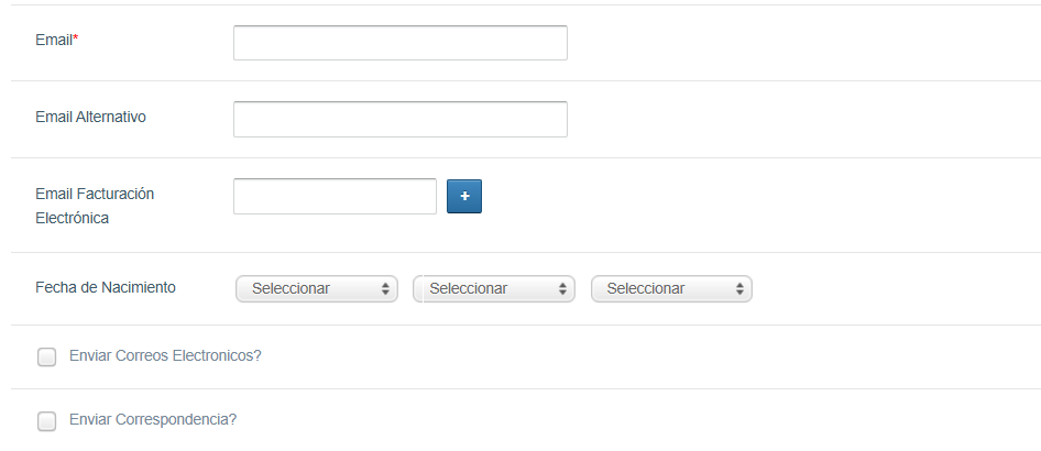 Email: Obligatorio (este email es usado para el envío de todas las notificaciones transaccionales del sistema)