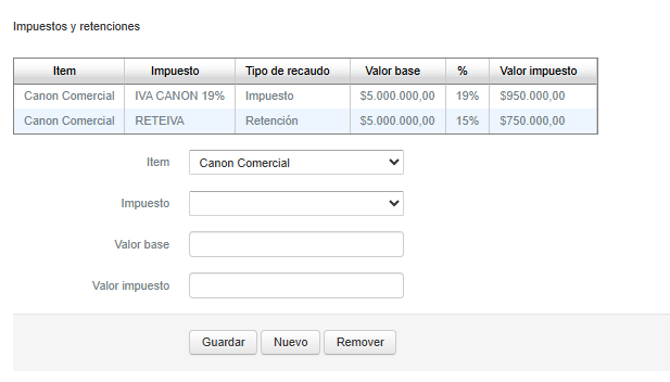 Valor impuesto: el valor se calcula automático con los datos anteriores