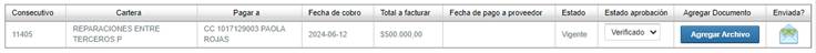 - Consecutivo factura: Consecutivo de la factura a pagar