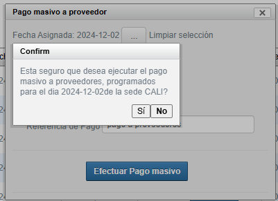 - Fecha de pago a proveedor: Definir la fecha para el pago masivo