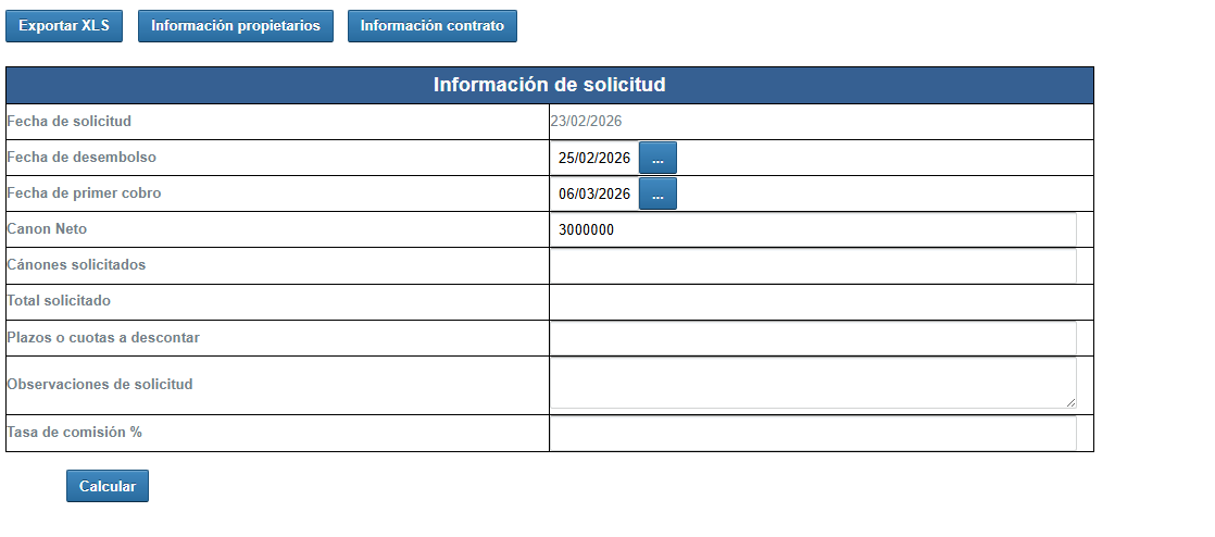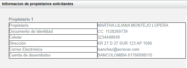 - Total solicitado: Se registra el valor solicitado por el propietario