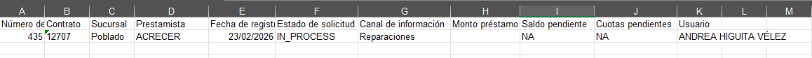 Fecha de solicitud: Fecha en la que se solicita el crédito.