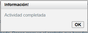 - Al aprobar la verificación sale el siguiente campo para dejar la nota de la aprobación y el aviso de la actividad completada después de guardar