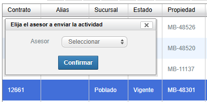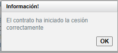 - Cuando el contrato no tiene cartera pendiente el sistema informa por medio de un Pop up que "El contrato ha iniciado Cesión"