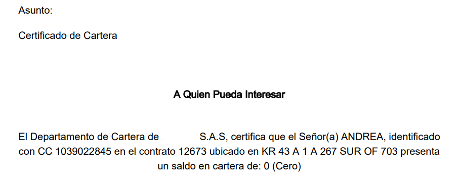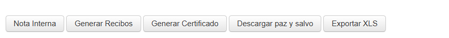 Generar certificado: Genera un documento en PDF con la información de los saldos pendientes ya sean por cobrar o por pagar, debes seleccionar el contrato para usar esta funcionalidad.