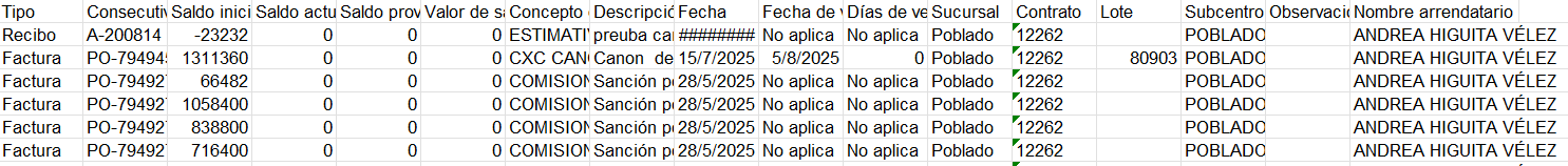 - Exporta a XLS: Desde esta opción puedes descargar en excel todo lo que se encuentre en la visa de la consulta; sin contrato, con contrato, todas las carteras, carteras cerradas y/o carteras pendientes.