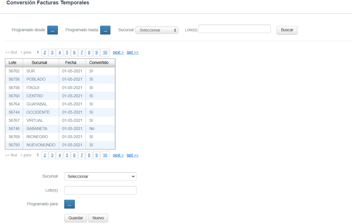 - Sucursal: Seleccionar de la lista la sucursal que se le programar la conversión