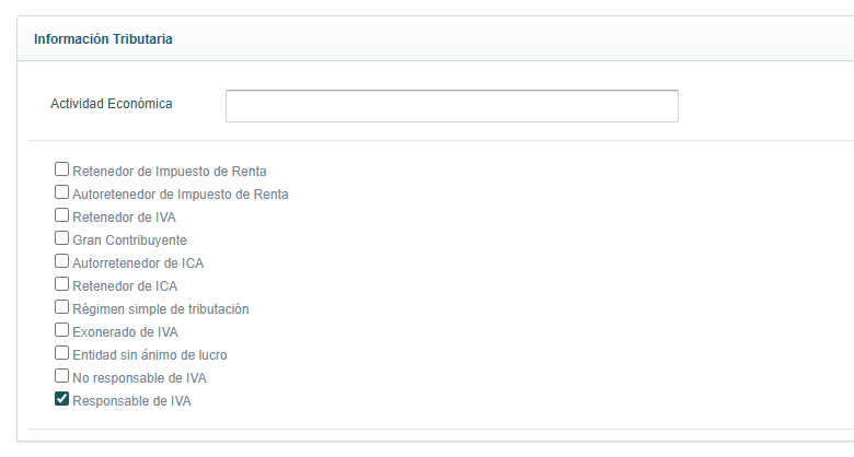Las responsabilidades fiscales nos definirán en facturación y pagos los impuestos y retenciones que serán aplicados (Iva, retefuente, reteica, Reteiva)