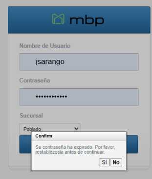 Cuando se cumpla el tiempo definido al intentar ingresar sale un mensaje de confirmación que indica "Su contraseña ha expirado, Por favor. restablezca antes de continuar" si el usuario elige al opción no el sistema no le permite ingresar.