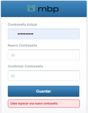 - Debe ingresar una nueva contraseña