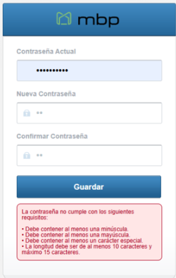 También te muestra los parámetros que debe cumplir la contraseña para que se más fácil el cambio.