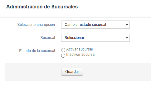 Seleccionar una opción: Cambiar estado sucursal