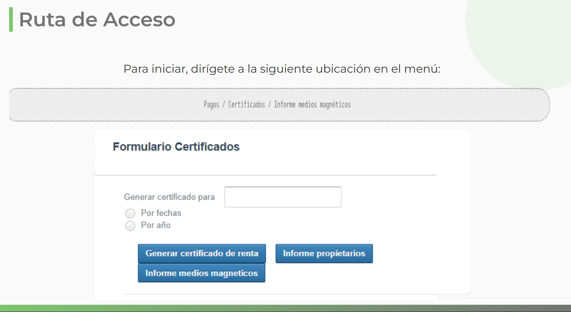 Llave para visualizar la opción de descarga: downloadMediosMagneticos, la llave debe ser asignada al rol responsable de la descarga de esta información.