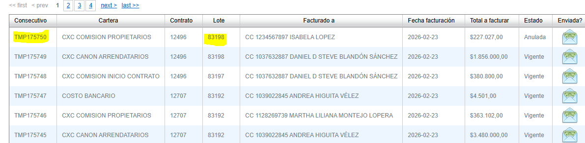 - Despues de este proceso al realizar la búsqueda del lote en facturación/facturas ya el documento debe tener asignado un consecutivo real de facturación y puede ser emitido a la Dian en cualquier momento.