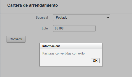 - por ultimo hacer clic en la opción Convertir, donde saldrá un aviso que indica "Facturas convertidas con Éxito.